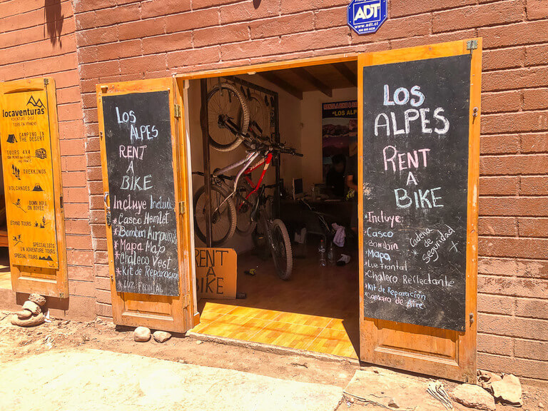 There are a few bike rental agencies in San Pedro de Atacama, so you shouldn’t have any trouble finding bikes. It’s important to try out all bikes before you agree to pay for them. We hired ours from Ciclo Aventura Atacama, here’s the Google Maps location. They have a 5/5 rating on Google and we had absolutely no issues with them.
