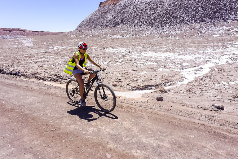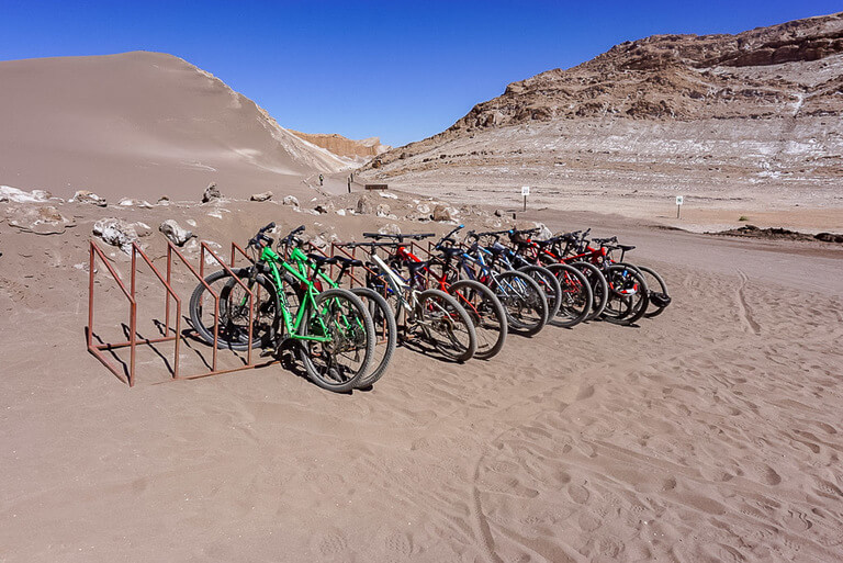 It might seem like a good idea to rent bikes the night before you plan to visit Valle de la Luna so you can get an early start and beat the heat. But you can’t enter the touristy area until they open the gates at 9:00am. So it’s not worth paying the extra money to rent bikes for longer, unless you also plan to use them to cycle to other places like Valle de la Muerte.