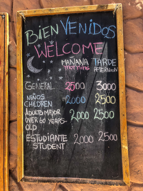 It took us around 20 minutes to reach the entrance building from town, so we arrived around 9:00am. It was a hot day in February and the sun was already beating down on us. We stopped to pay (it was cheaper a few years ago when we did it), fill up our water bottles and check for any safety issues. We also brought snacks and were told we couldn’t eat inside, so we ate everything before entering.