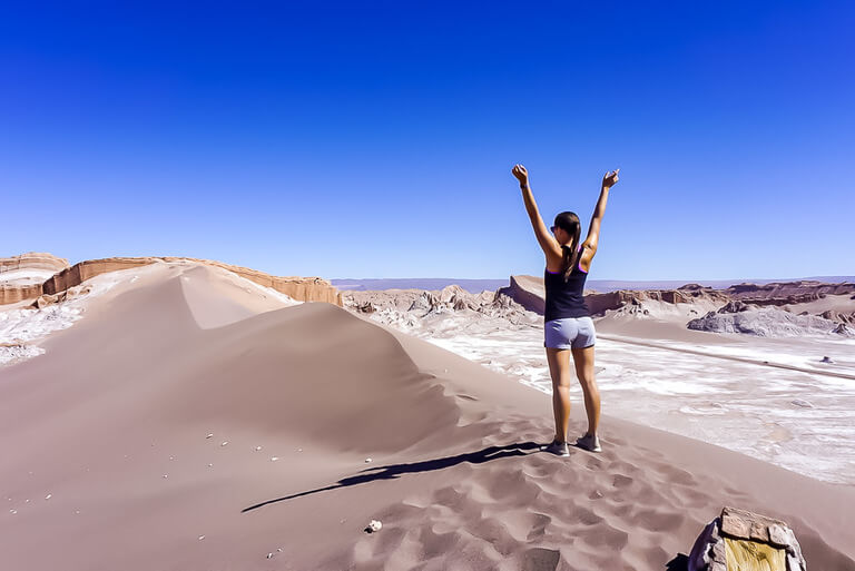 Valle de la Luna is busiest during the hottest part of the year from November through March when most tourists travel around South America. You’re more likely to share the roads and viewpoints with lots of people if you visit in peak season, and the heat can play a major role with your safety. On the other hand, if you visit during Chile’s winter season it will be cool and quiet.