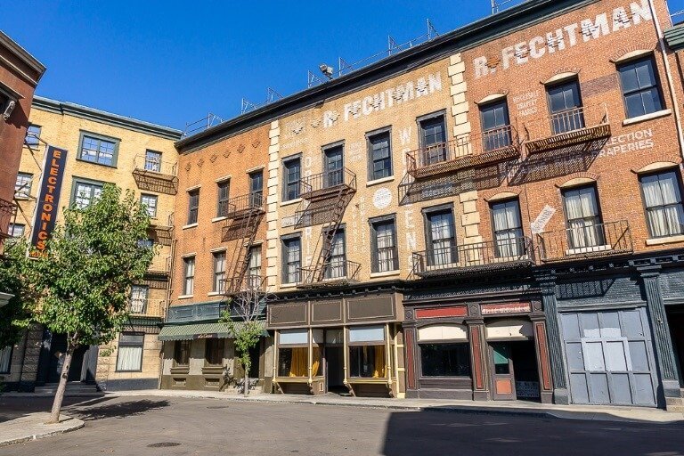 Warner Bros is home to 10 backlots spread across 110 acres. A backlot is a permeant exterior building used for outdoor scenes in movies and tv shows. Think the old west or New York City buildings. One example is the alleyway where Tobey Maguire hangs upside down as Spiderman to kiss Mary-Jane. That same alley and brick building surrounding has also bee used in other major blockbuster movies.