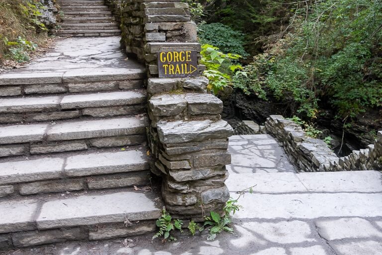 Couch’s Staircase is a series of 120 stone steps leading up and away to the left side. You don’t need to climb this series of stairs unless you want to see the Watkins Glen south entrance area.