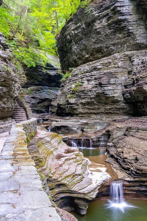 Watkins Glen State Park is home to one our favorite hidden gem photo spots in the entire US – Rainbow Falls. Kristen grew up in western New York and we spent our covid lockdown year in the Finger Lakes, so we’ve hiked the mesmerizing gorge trail more times than we can count. One thing we can tell you for sure is that walking through this genuinely postcard-perfect place never gets old!
