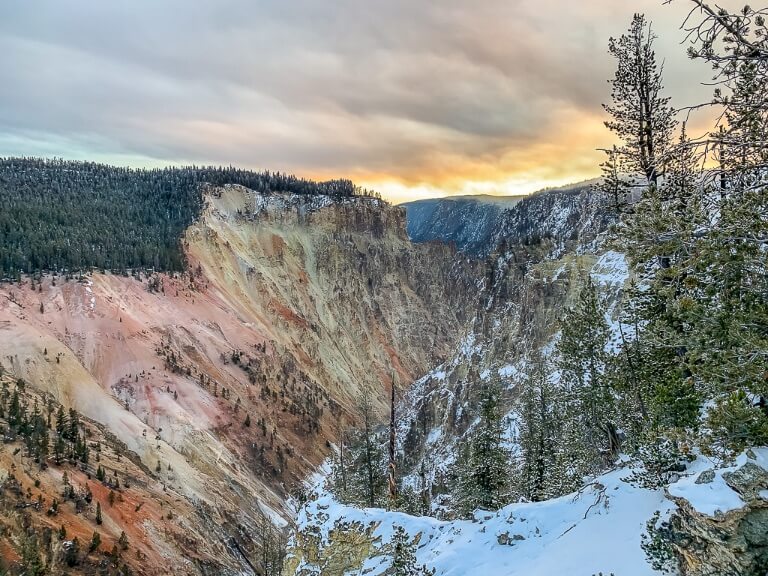 Start out the third day with a drive along South Rim of the Grand Canyon of the Yellowstone. We highly recommend arriving at Artist Point in time for sunrise because itâs a stunning scene. Weâve done it twice and itâs lovely. Stop at Upper Falls View on the way back and look out for eagles, we saw a huge eagle fly out of a nearby tree last time we were there. It was awesome!